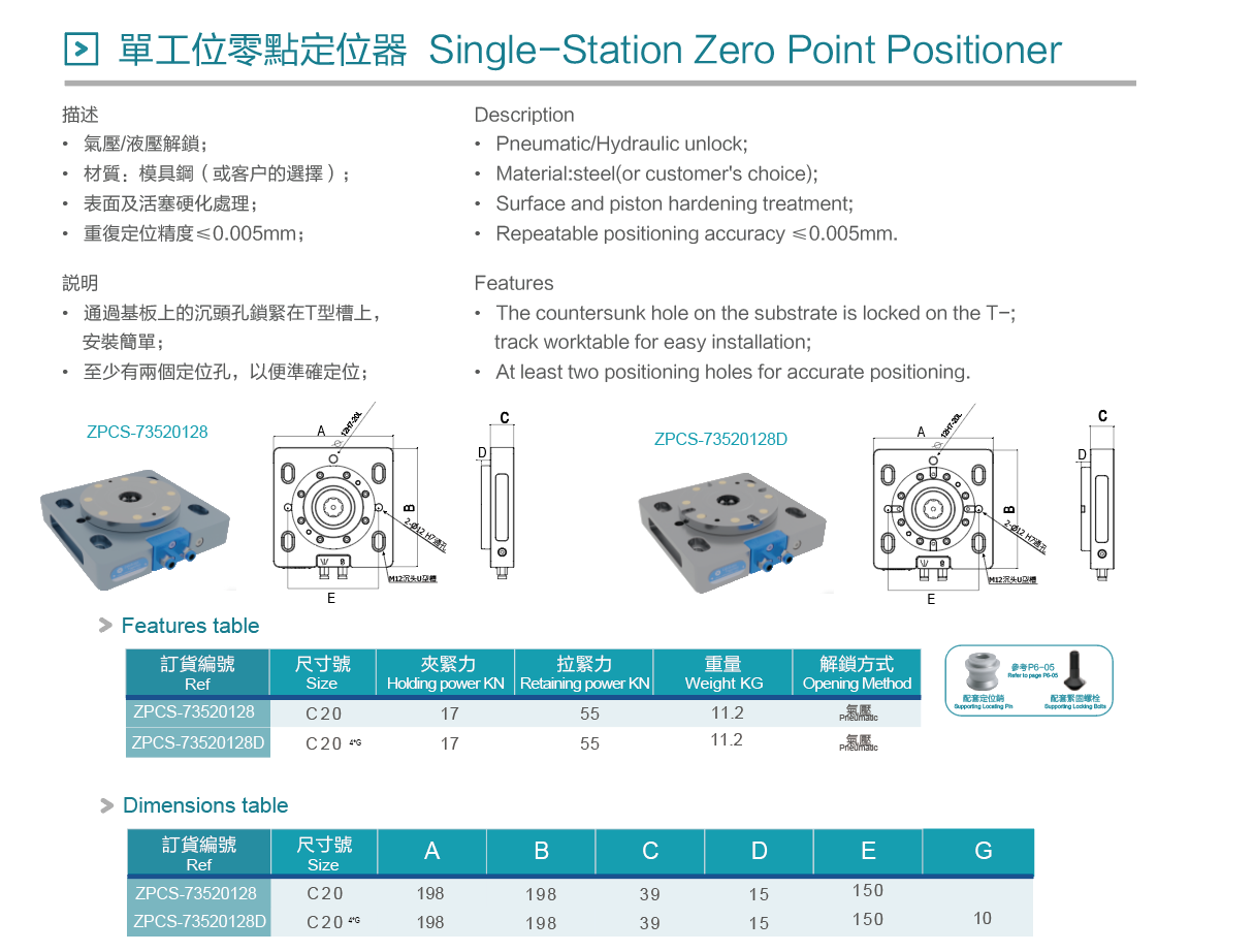氣壓/液壓解鎖 | 表面及活塞硬化處理 | 模具鋼(或客戶的選擇) | 重復(fù)定位精度≤0.005mm |