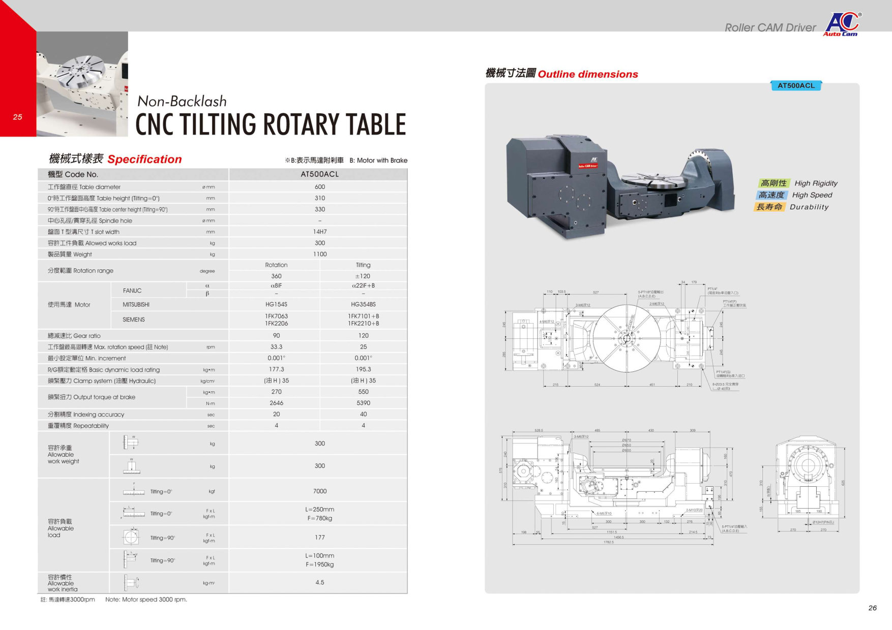 five-axis ф350-500 AT350ACR/350ACB/AT400AC/AT500AC numerical control rotary table